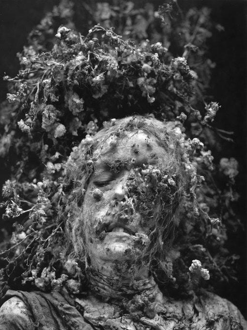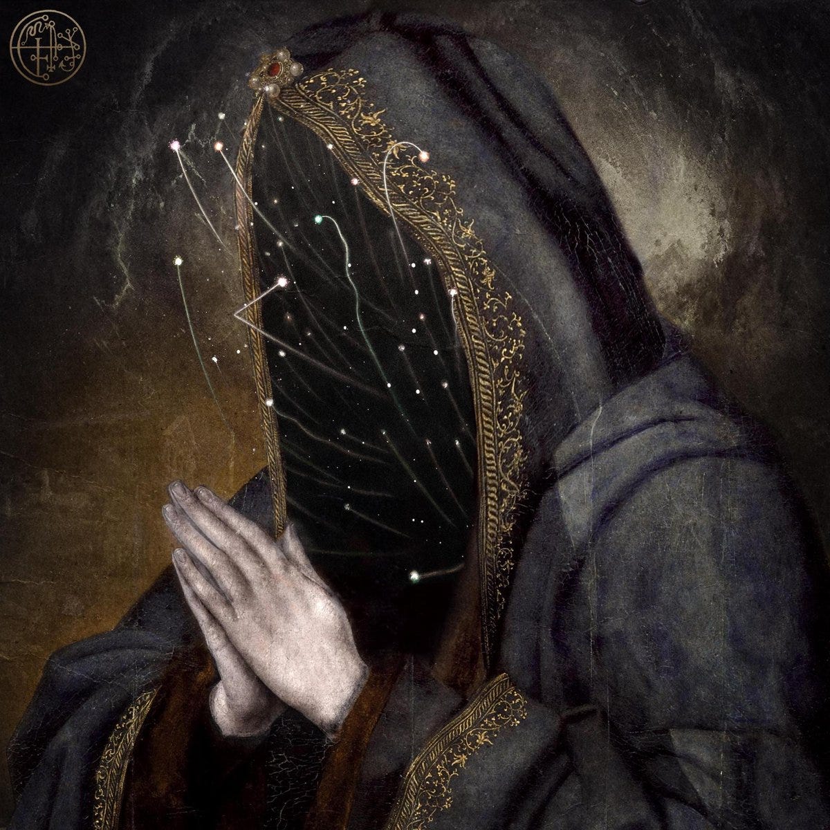 with knees on earth, she prays for us