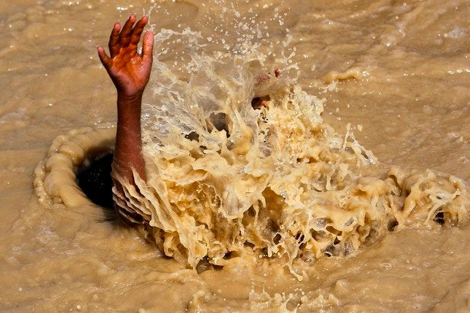 below the mud,