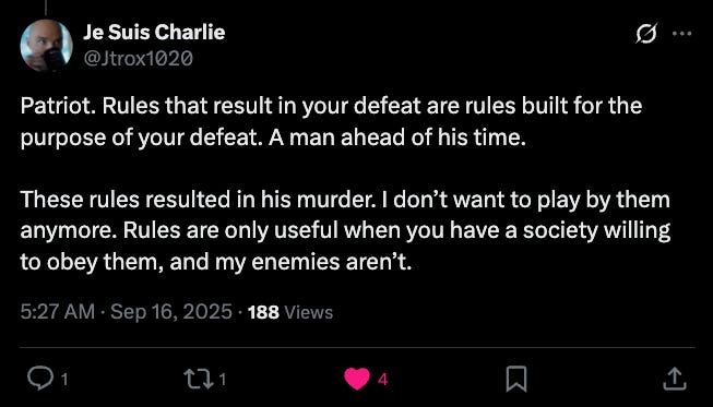 I was traveling abroad when Charlie Kirk was assassinated and for two weeks thereafter. Perhaps it was the physical distance, but I found my thoughts drifting more to the (very) long-term future of my country instead of the short-term. After much reflection, a few things seem clear to me.